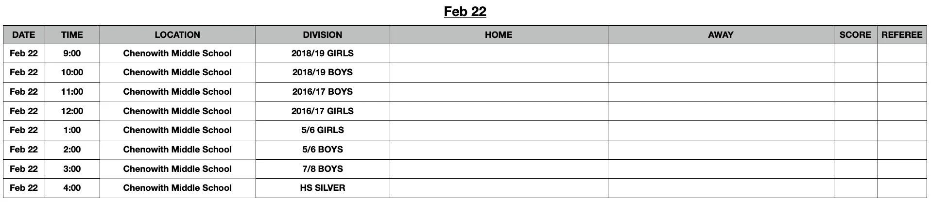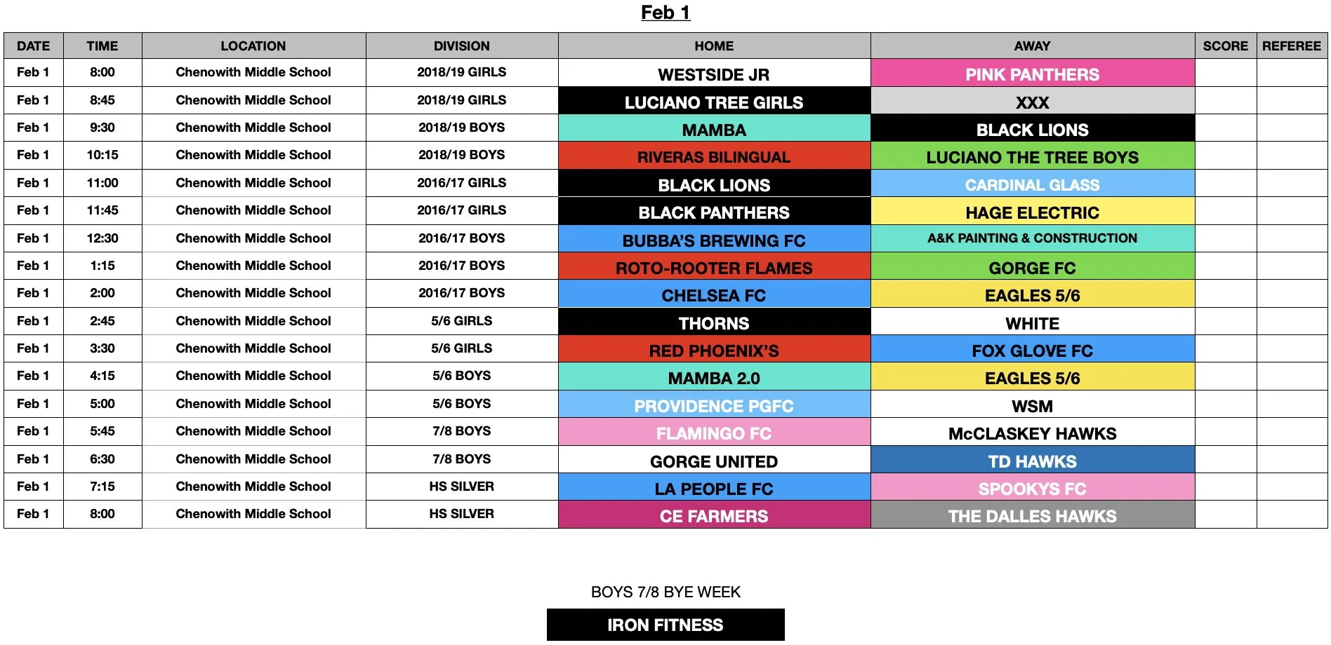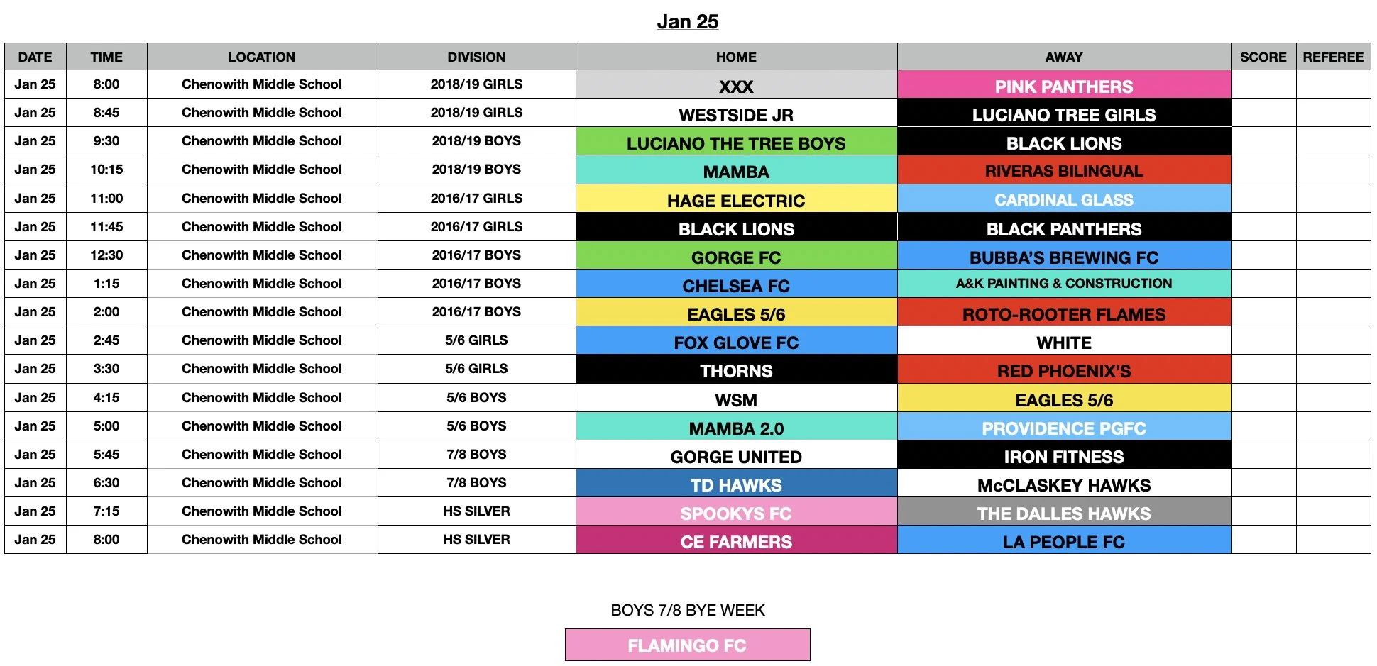 2026 FUTSAL STANDINGS SCHEDULE & RESULTSGym Locations:Chenoweth Middle School Gym, 3748 W 13th Street, The Dalles, OR